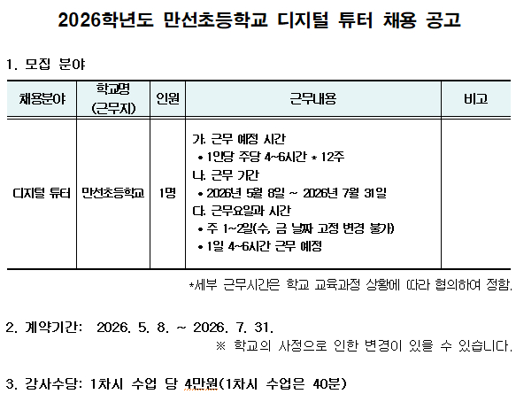 [만선초]2026학년도 디지털튜터 채용공고(1차)